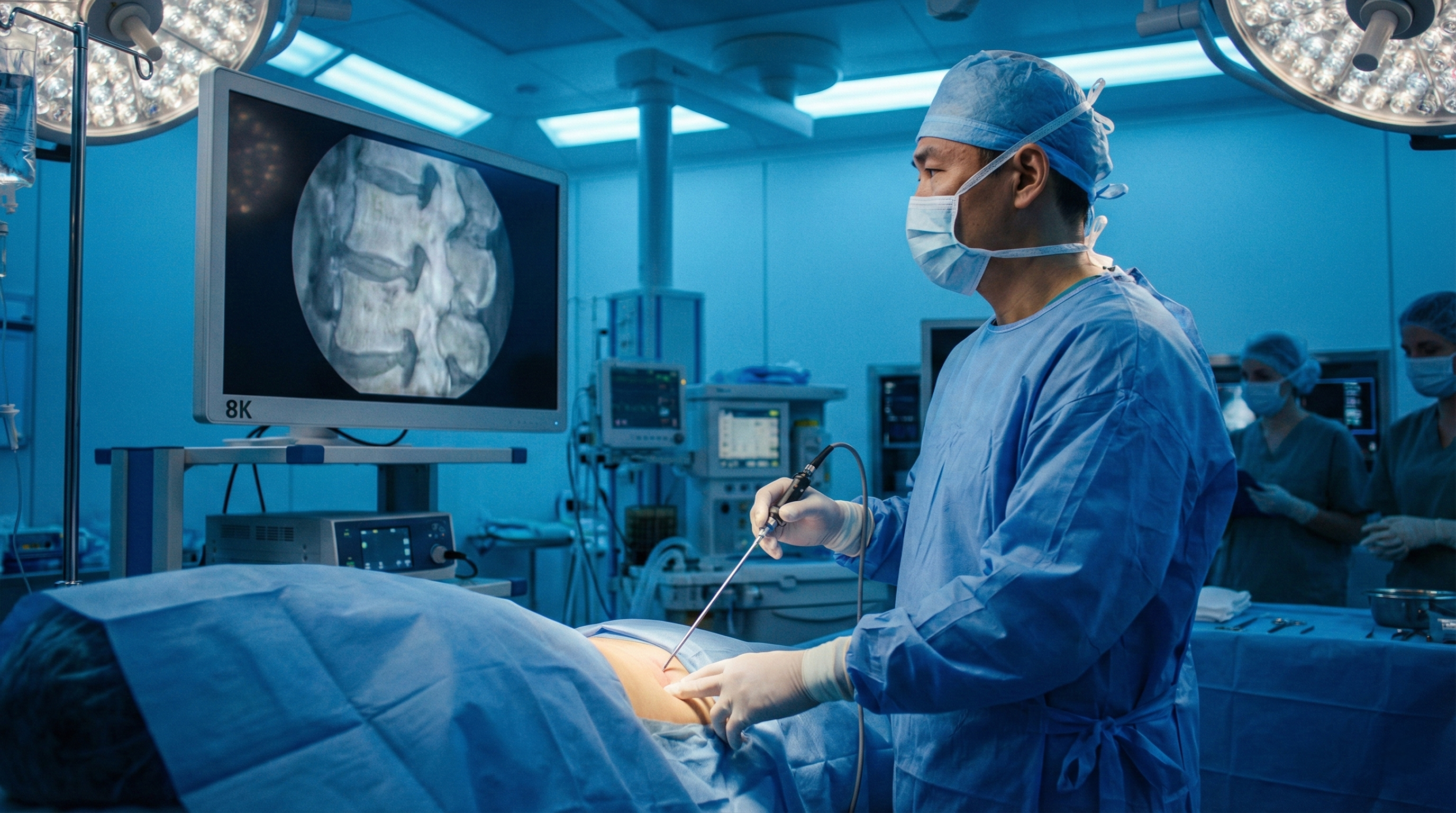 Tindakan & Hasil: Prosedur Minimally Invasive Surgery (MIS) menggunakan endoskop (kamera mikro) melalui sayatan <1cm.